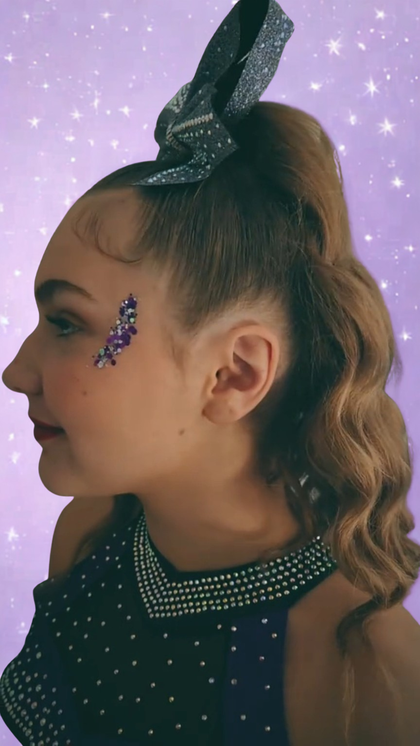 💫 Pro Tip: Apply setting spray after glitter is applied and glue is dried for an all day shine that stays competition ready!